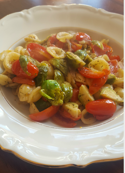 - 2 hands full of brussel sprouts (sliced into quarters)