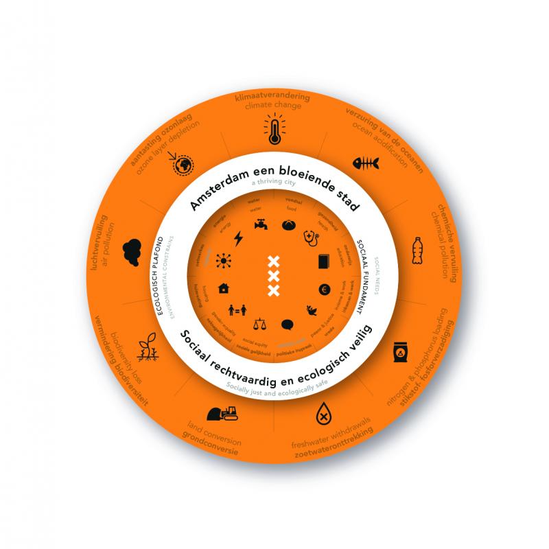 Strategic choice ‘groeien binnen grenzen’, graphic elaboration of the doughnut vision Amsterdam, source: Omgevingsvisie 2020, Municipality of Amsterdam